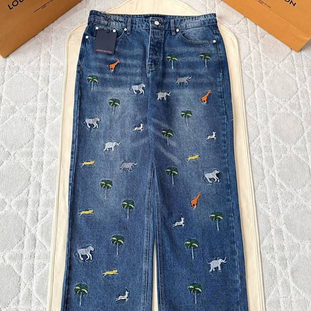 루이비통 자수 데님 팬츠