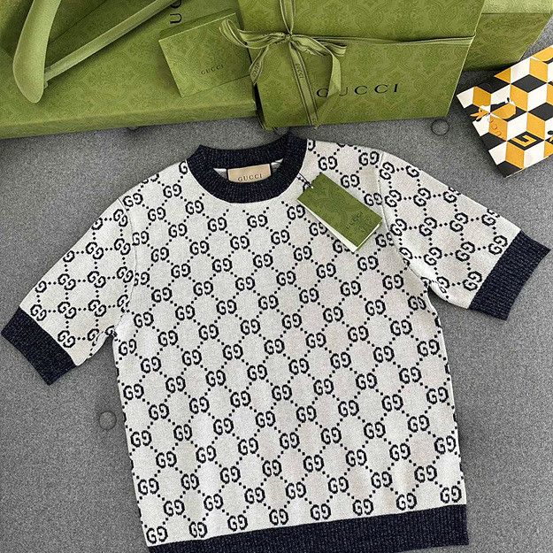 구찌 울혼방 자카드 반팔 니트